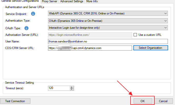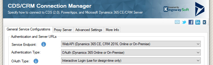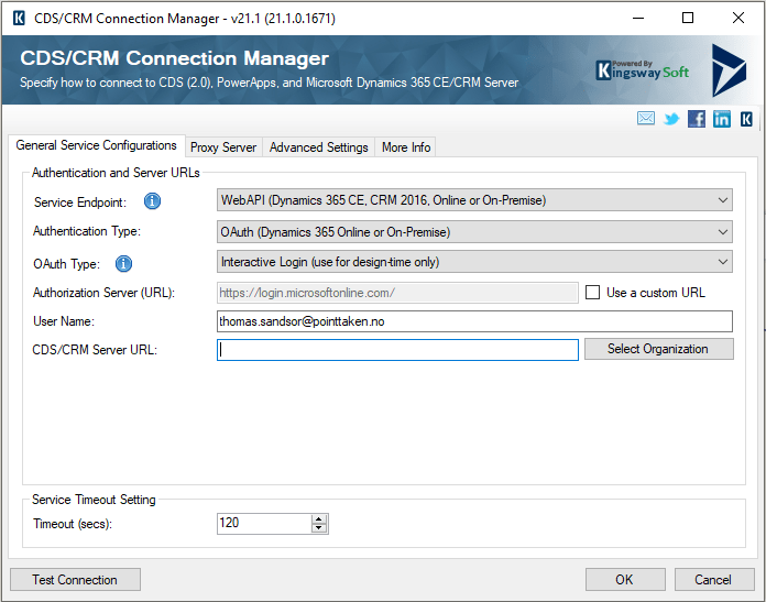 Normally the best practice for SSIS and KingsWaySoft would be with an Application User. The only problem is that Dataverse for Teams doesn’t support application users. With the new type of connection the you have to manually add the username/password for each run. It retrieved a new token for each run.
