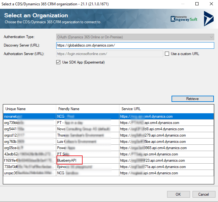 Click on Retrieve and now we can see all organizations. Dataverse AND DV4T. The BlueberryAPI is a Dataverse for Teams database.