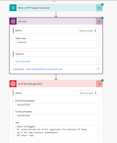 From this flow we would also trigger sending of SMS notification to the citizens that were in dataverse.