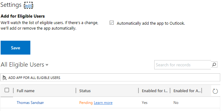 This is what you see when the app is loaded in your Outlook. More about the app in a later post.